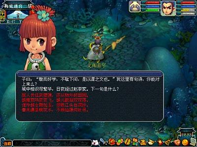 活动期间,玩家通过与东海湾的海底游泳比赛登记人(东海湾85,22)变身签到,从东海湾出发穿越海底迷宫到达花果山,路途中玩家需要找对应的15个比赛裁判逐一登记,最后到达终点找到“终点签到人(傲来国 199,79)”签到。期间参赛玩家会遇到不同类型的水怪,请千万要小心。