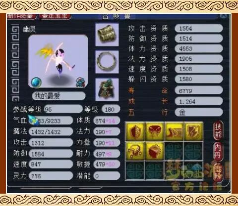 6技能全红幽灵防资1514,体资4553,速资1508,成长1.264!这资质和技能简直是碉堡了,这只幽灵在武神坛116联总决赛中可是精彩地打出了4个死亡禁锢。
