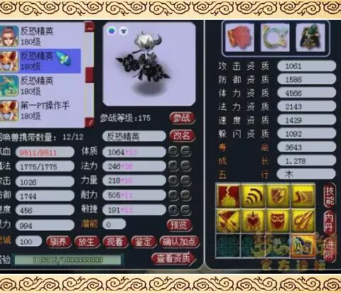 8技能耐法宝宝,防御资质1586,成长1.278!防御资质绝对亮点,另外这只法宝宝因为有法防的存在极大提升了生存能力。最后小道猜测,这只宝宝的内丹应该是电魂闪。