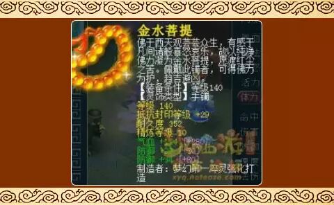 140级手镯:基础属性抵抗封印等级+29,双加防御和加气血精炼等级10的手镯!增加人物防御和气血属性,这么“硬”的一件装备可以让人物在PK战斗中稳如泰山,屹立不倒。