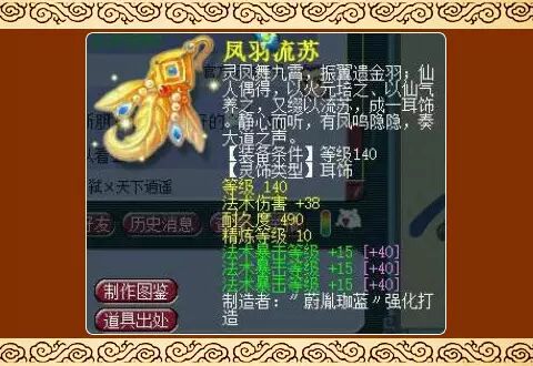 140级耳饰:这是一个法术系的灵饰,拥有基础属性法术伤害+38,三属性法术暴击等级分别+15,精炼等级10的耳饰!该耳饰的亮点无疑是那可怕的法术暴击,在PK中法术暴击是有可能直接秒掉一个宝宝的,这样的耳饰相信也是喜欢暴力玩法的玩家都想要的。