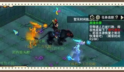 劳释道人——主怪是凌波城,前排中间阵石会保护主怪,后排灵符4个方寸,前排4个纯阳怪是凌波城,会破血。建议先击杀一个后排灵符,再击杀一个纯阳,依次击杀灵符和纯阳,封系封后排或者主怪,不能封多了,否则阵石会晶清,当纯阳比灵符少了主怪会变成凌波城,翻江倒海伤害爆表,当灵符少于纯阳,主怪会变成灵符方寸,会封三个,命中率不高,有壁垒的宝宝可以打阵石,一般情况阵石是防御状态,当阵石气血较少时,便不会出现自动保护主怪,战斗胜利后获得金钥匙。(提示:21点40就不能杀了)