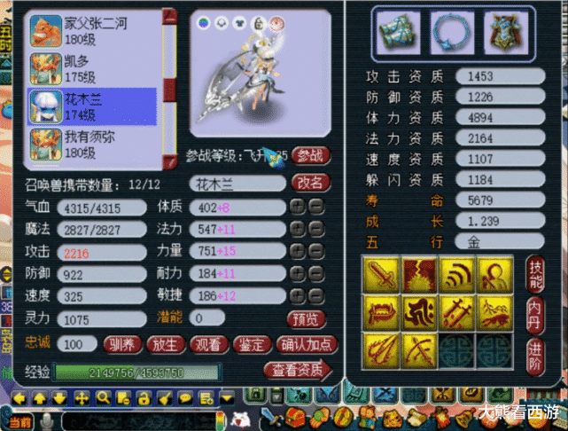 最后展示的是一只10技能的功法双修月魅。唯一欠缺的就是技能少了个高魔心和高夜战,这两个技能都非常重要,但套装注定只能带大法套,实际输出能力肯定是要大打折扣的。不过因为有法连和嗜血追击的存在,一回合有可能可以群秒4次甚至更多,大熊实在是算不出到底能出手多少次了,可玩性也是非常高的。