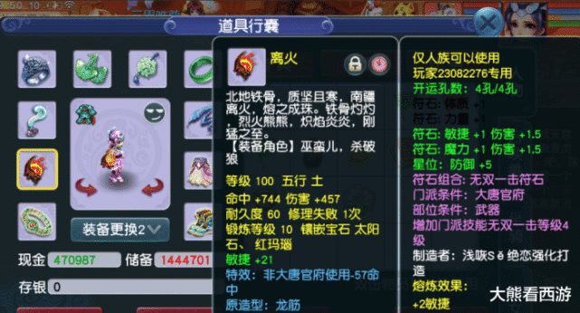 这个宝珠的纯初伤刚好能是629点,比上面那个宝珠多了8点伤。而且这个宝珠的附加属性上,一共有42点对物理系来说最有用的力敏双加!大熊稍微算了一下,这个宝珠的综合初伤是657点,在打满宝石以后能达到740点总伤。最烈的属性+最好的双加,这是要多逆天的人品才能鉴定出来的装备啊,咱们玩的还是同一款游戏吗?