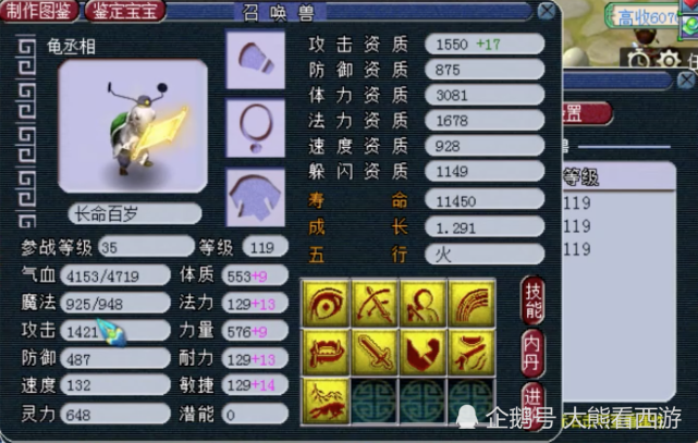 首先是一只9技能的龟丞相,1567攻资和1.291成长,太强了吧!