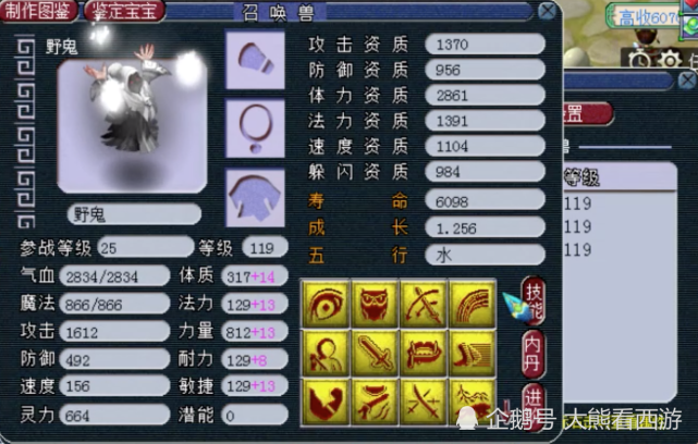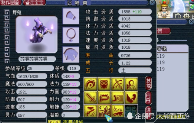 最后是13技能连善野鬼!这老板的个性动物园跟别的神豪老板的动物园不同,这位老板的资质和成长都是非常高的,真要说起来确实都能用来兼顾PK了!然后我们再来看看老板平时任务带的召唤兽!