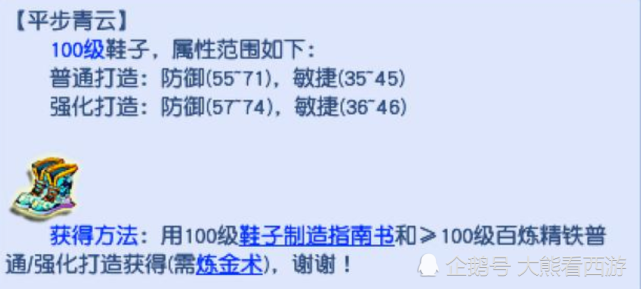 相信各位小伙伴都知道,梦幻里的熔炼系统可以将“人造”出来的装备,通过熔炼的方式提升基础属性以及附加属性。所以系统产出的装备一般要比“人造”装备便宜不少。而之前大熊就有写过关于“远古熔炼”的文章,就是在很久以前的梦幻中,熔炼是没有上限的,所以就有很多通过熔炼突破属性上限的装备存在。比如下面这双100级的鞋子。