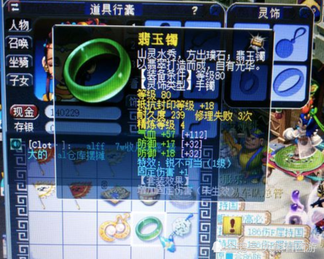 首先是一条80级的双防1血配饰!目前市场价大概是1500左右,就算打个5折,也算是梦幻的一波不小的福利了吧!但光一个3属性灵饰肯定是不够秒杀一切的,紧接着这位玩家又把自己的手镯给发了出来!