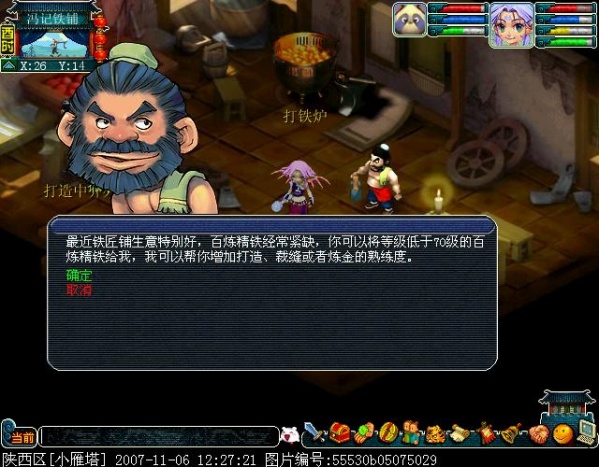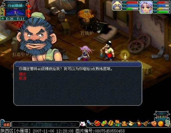 选择后,把你的精铁给NPC,有一个确认。
