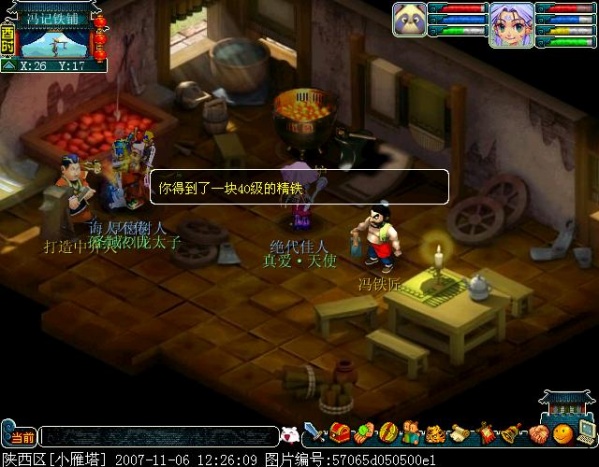 也可以在铁匠铺的打铁炉处用两个N级的精铁合成一个N+10级的精铁 ★(N≦70)★