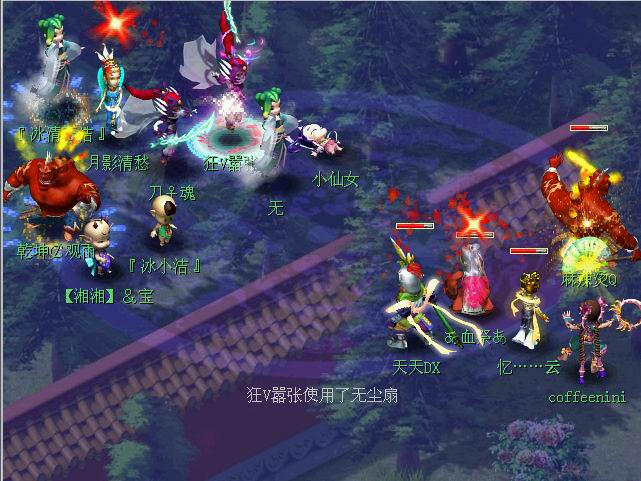 刀魂队死亡禁锢宝宝发挥了威力血祭等人相继中了死亡。刀魂队对中了死亡的天天DX也毫不留情狂V嚣张的连,刀魂的三扫以及月影MM的五行下依然坚毅的站着的天天DX虽然最后没扛过观雨的2龙但也引来旁观者们不断的喝彩跟赞叹。