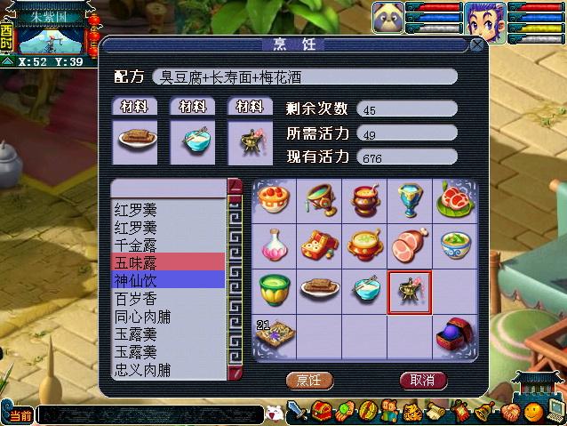 1-100级 1500/ 280 定位:制作高级配方烹饪,以神仙饮为特色。