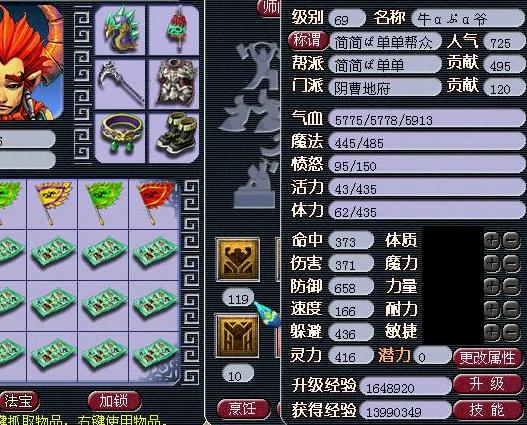 在气归、命归、四海修改以前,全血DF在擂台上那个牛啊,太吓人。后来气归、命归、四海增加了恢复上限的限制,导致不少全血DF走少了+耐的道路。69的血(耐)DF可以说是全队的核心人物,虽然没有9人+血的技能,但是救人可以用9转代替,加血可以用金香代替,解封可以用5龙代替。在我们区,有个69的全血DF,就他本人说的,+了临时,气血可达7000+,防御600+,灵440左右。因为他把装备都卖了,属性图就截不到了。他给我的印象很深,有次上擂台他站云阵1号位,一个130左右的DT3刀扫了1200+的血,还有就是他用JQ,直接恢复1000+,比气归效果还好。