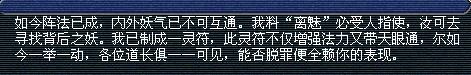 正是如此,由于阵法减弱,如“离魅”那般妖怪才会逃脱出来,如今要加强封印,阵眼有五,分为西金,东木,北水,南火,中土,阵眼皆有护阵仙灵,中或有已被妖物迷惑心智的,速速前往查探吧。。。。