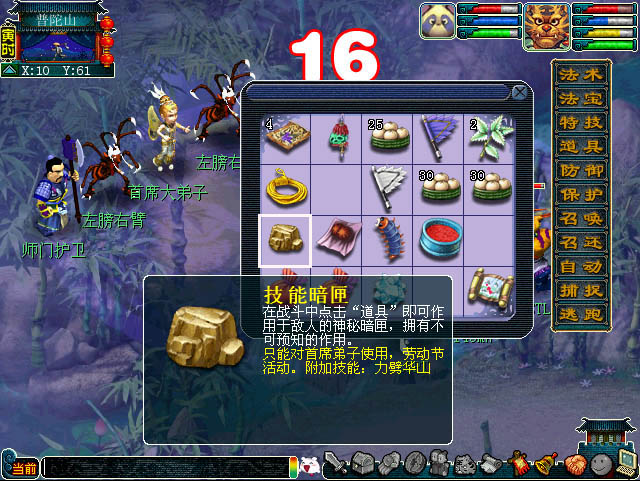 拜望首席: 前往挑战某门派首席大弟子,可能得到“技能暗匣”而领悟某种神奇技能,可在战斗中通过使用道具的方式对首席大弟子使用该技能;