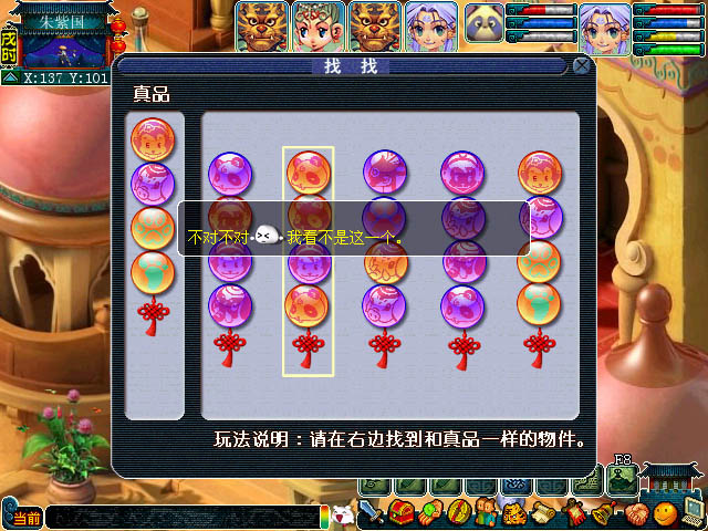 趣味玩法: 在一堆飘动的珠链中找出NPC需要的那条即可完成任务,三次错误会引发战斗,战斗胜利也表示任务完成;(图2)