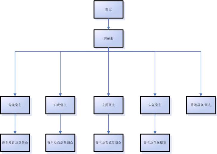 1)所属分堂:玄武、青龙、白虎、精英、普通帮众;称谓显示为:XX帮青龙帮众、XX帮精英等;