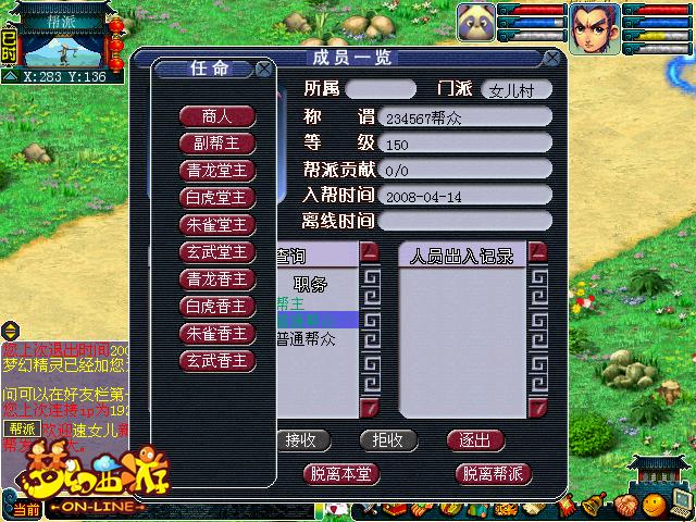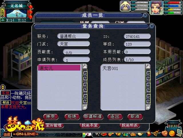 等级≥11级的玩家可以找到“帮派主管”,通过对话申请加入帮派。 申请后如果被接纳入帮,会得到系统提示。