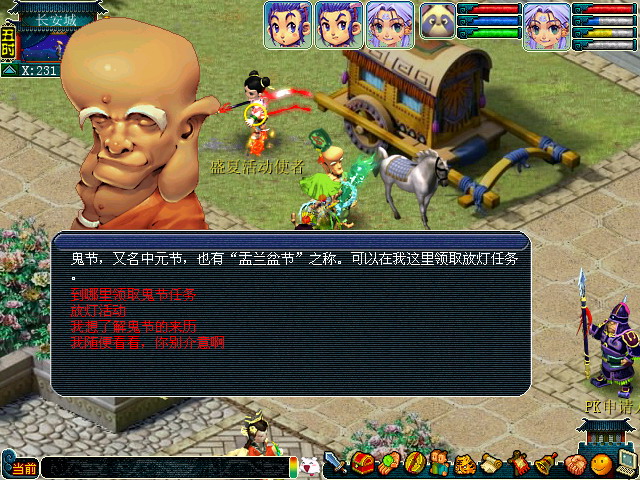 - 鬼节活动使者,位于长安城(232,119)