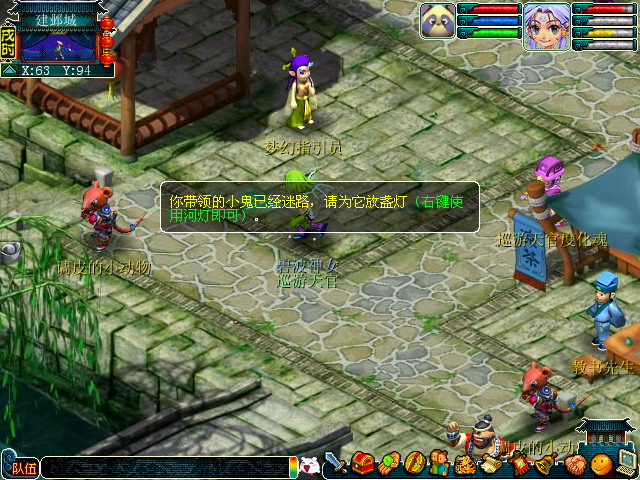 放灯任务到指定地点和度化魂交谈,可以得知需要送它去的地方。同意开始护送后,这个度化魂开始跟着玩家走动。