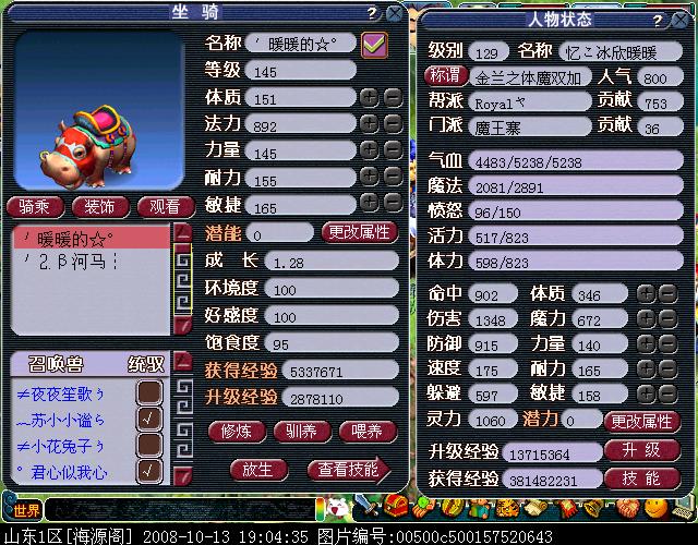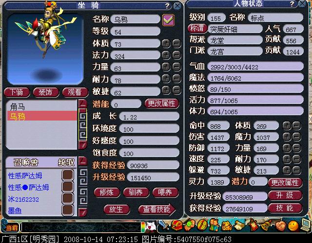 昨天看到别人 发出了 高级的坐骑 才有 兴趣计算了一下 发现 法系 加全魔 亏死了(我的鹤加了全魔)