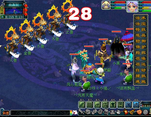 点怪后出现这样的对话框就可以杀了!!!幽森洞内共有“火”、“水”、“土”三种属性,每杀完5个"软柿子"就会出现一个属性的大怪,如图.