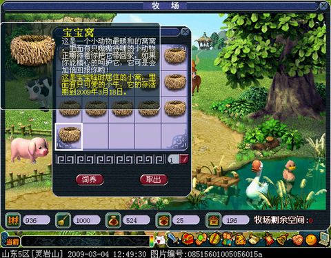 繁殖出的宝宝窝自动放在仓库里,可以自己留着下回养,也可以拿出去卖,卖宝宝窝也是一笔比较不错的收入