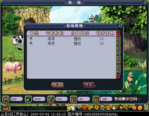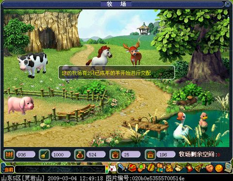 选好要养的动物,点饲养,动物就出现在牧场里了