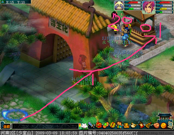 去HS路上走大雁塔下路中间点位置如图13号采取跑动答题方式. (看了这么多介绍基本大家也可以知道了)这里还是讲解下吧.先点1号香炉那、跑动过程钟点考官答题。