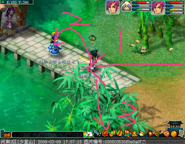 注意本人站位.点完考官后沿着左侧竹林走.然后过桥后贴山走10号考官请站在第2个台阶处附近鼠标迅速移动到考官那回答题目.然后在往右边移动到驿站老板和他对话。