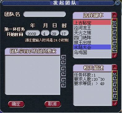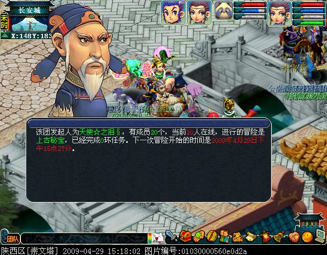 上古秘宝单环任务(任务时间:120分钟)任务流程:当团队成功组建开启后,任务开始(该副本发起至少需要20人,因为是2队刷,所以筹起10人后,还需10个小号筹数即可)副本开始后组队找御林军左统领(长安101,227)将你传送入迷宫内寻宝。进入迷宫后,需团队中有人找到“秘境散仙”对话领取任务。