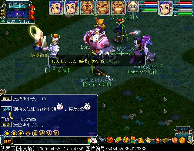 二、副本开始之后,需要至少1个小号进入副本记录阵眼守护人0~5及对应坐标;(这样最后才够6个人开阵眼,5个人杀上古神兽)