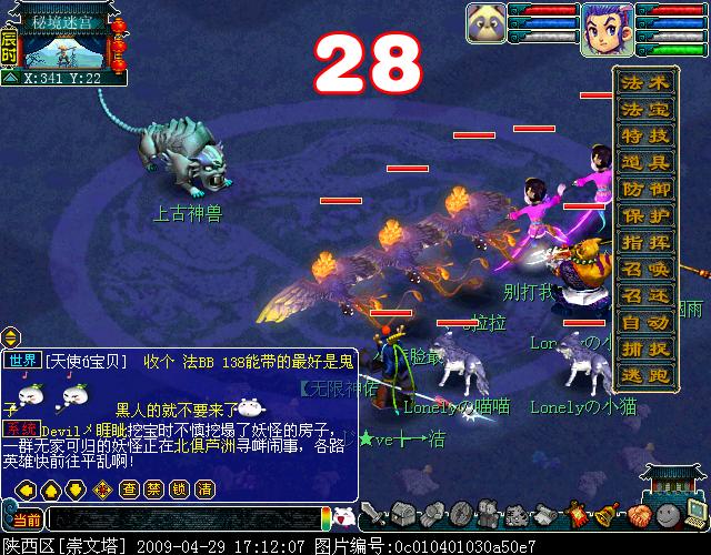 (上古神兽貌似有两种,上次副本也遇到上古神兽是BY噬天虎的相当难打,