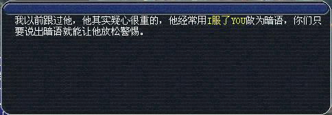 第五个完成任找人务的会得到贼匪的接头暗号。五个人完成后,任务栏就显示出来他们的具体坐标和暗号是什么。