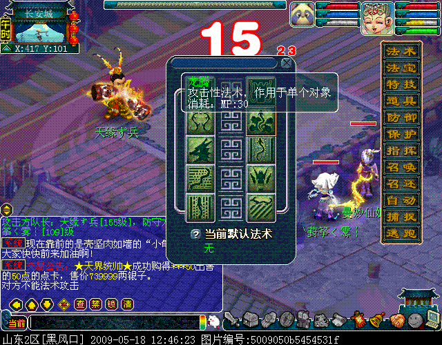 天地同寿 功效:为目标临时加上一个防御护罩,吸收全部法术伤害(不包括法术启动的物理攻击),但防御值降低50%,并且所受物理伤害会加倍