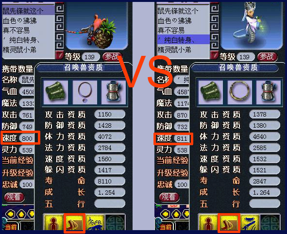 原理:利用速度相当的2个敏宠,用更换宝宝装备的办法,使这两个宝宝的差值产生变化,并以10个一组来测试其乱敏次数,找到相对平衡点。