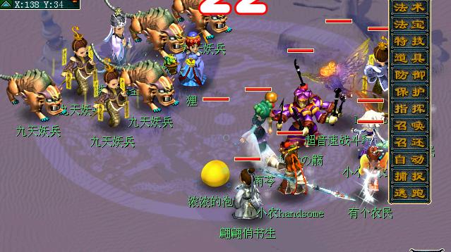 吃个香、使用朱紫出境外的77快速度来到小西,找到妖王后直接ALT+A攻击进入战斗。