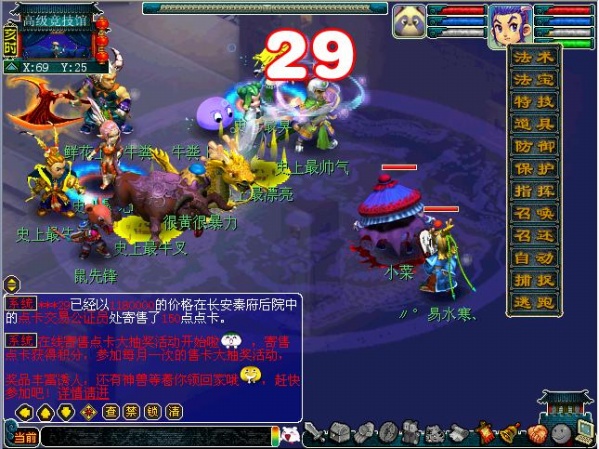 测试人物狮驼老牛等级138级,龙宫变异泡泡等级138级,魔王骨精灵140级,天宫神天兵140级,盘丝狐狸144级,对面为138五庄。携带的BB如下,鼠先锋为0级宝宝,天兵为79级宝宝,其他宝宝分别为144级,150级。