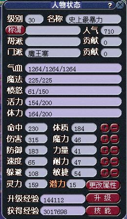 实验原理,找一个30级小号和我老公飞升138狮驼进行比较。