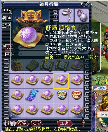 大家都知道低品质的五龙丹有可能出现解不掉封的情况。所以我这次用30级小号背一车擂台药来做实验。