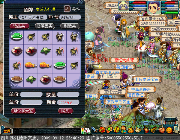 在门传,你可以买到师门中所需要的各种三药,烹饪。建议多点几个摊位,坚信没有最便宜,只有更便宜