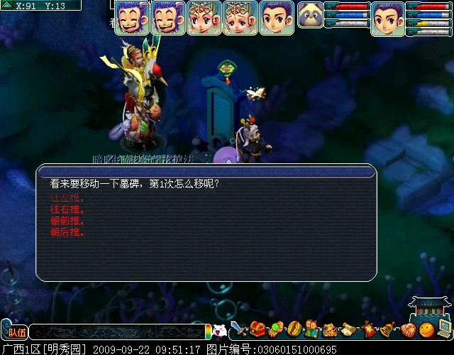 姜国师有给你任务,要你去挖墓去找佛珠,墓碑在(90,14)。一共要移动三次,小记移动的是 “左左前”,要是移动不对会有重新移动的提醒。)