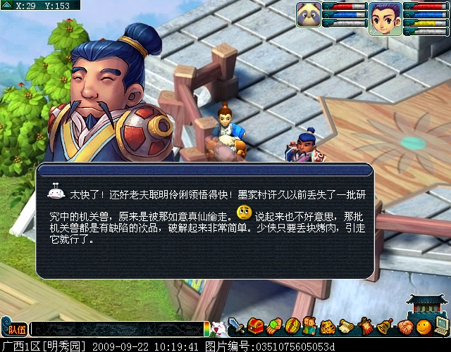 ★给肉进仙洞:于是就拿烤肉去勾引解阳山顶的后院机关兽(解阳山42,89),给他以后传送到了道观山洞内,需找袈裟和护身符。(道观山洞内有30多个箱子,在五分钟内找到袈裟和护身符,如果超过5分钟则必须重新买个烤肉进入寻找。找到了袈裟和护身符系统就会把你弹回解阳山,同时获得20W经验)