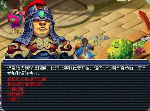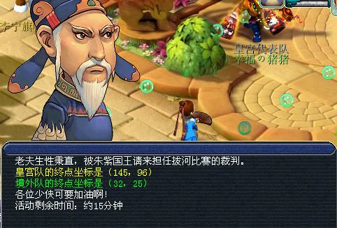 李宁拔河比赛主持人在朱紫国(80,62)在周六12点,大于40级的单人可以参加,共进行两场比赛。报名时间为10分钟比赛时间为20分钟,没有报名的玩家不能参加活动。(所以参加活动的童鞋不要错过报名时间。)