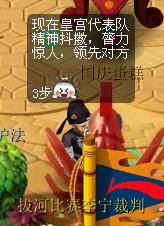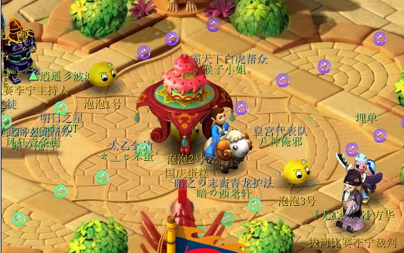 比赛没开始前,拔河比赛主持人,三个黄色泡泡,和比赛裁判员都是在朱紫国最中间的位置。