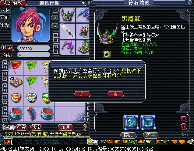 有2套的话就可以选择第2套不开启.平时的时候用没有符石的那套.PK的时候再用.这样就不要担心符石的耐久问题.或者组合出一套平时用的便宜符石组合套也可以