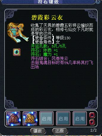 根据测试,高级装备后面的开运成功率实在不敢恭维,小农人品算好,只开了1件130级女衣到5孔,才用550W(只失败6次)