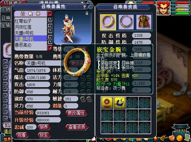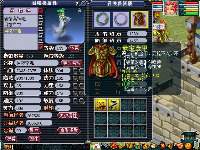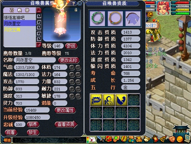 据真龙说他打了3级宝石,增加了40多伤害,不知道这伤害与本身宝宝装备的命中有没有关系,亦或者跟宝宝资质有关。