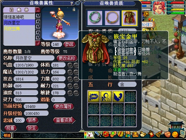 可惜的是铠甲没法打伤害石头,只能打防御和气血,而这2种石头没有那33%的加成。