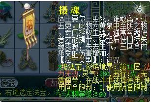 在这些法宝中个人首先为大家介绍的就是DF的摄魂,如果把门派二级法宝进行排位,我想摄魂说是第二,应该没哪个法宝敢称第一,那天在记者团中“正版大头娃”同学就向我们哭诉——